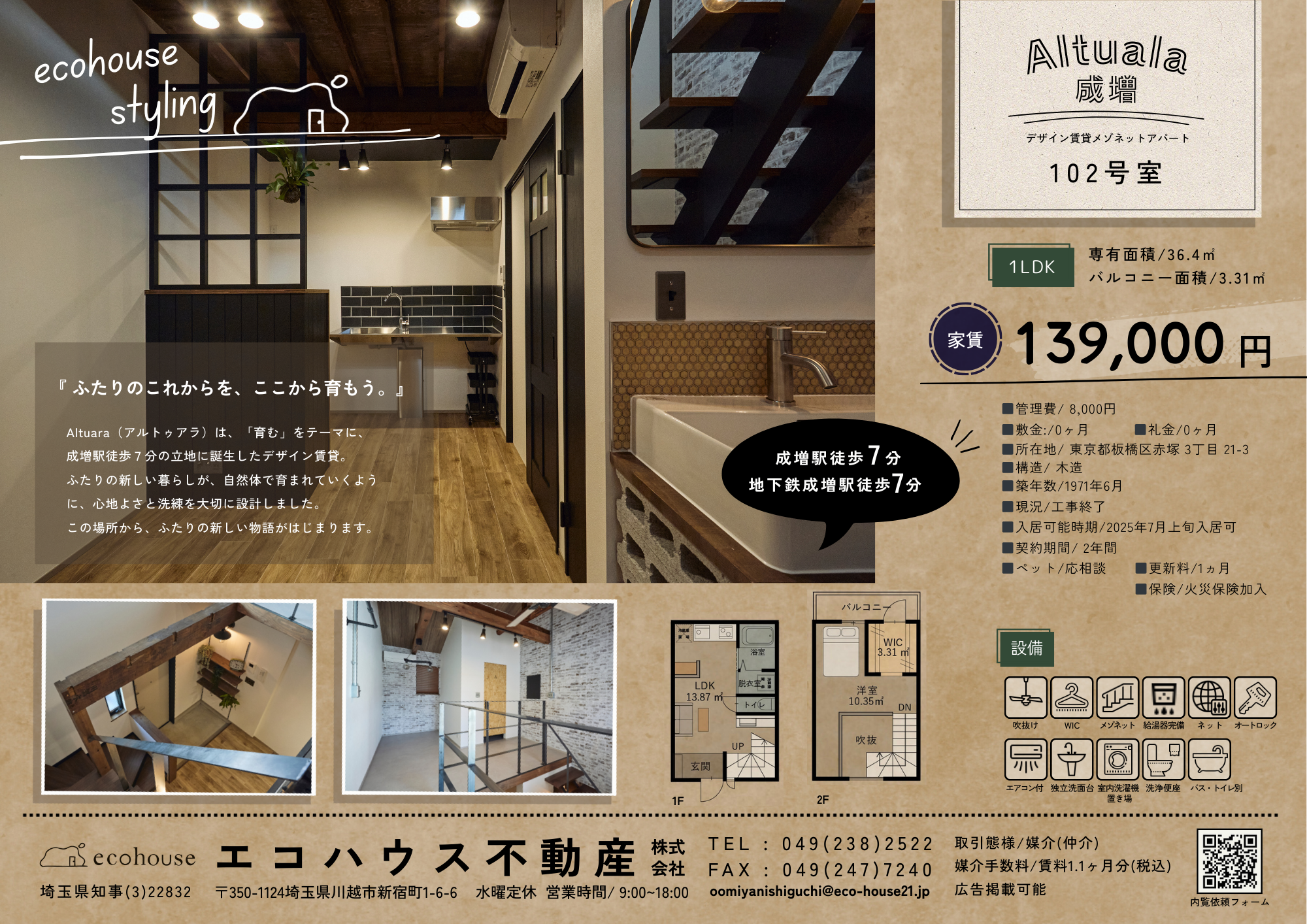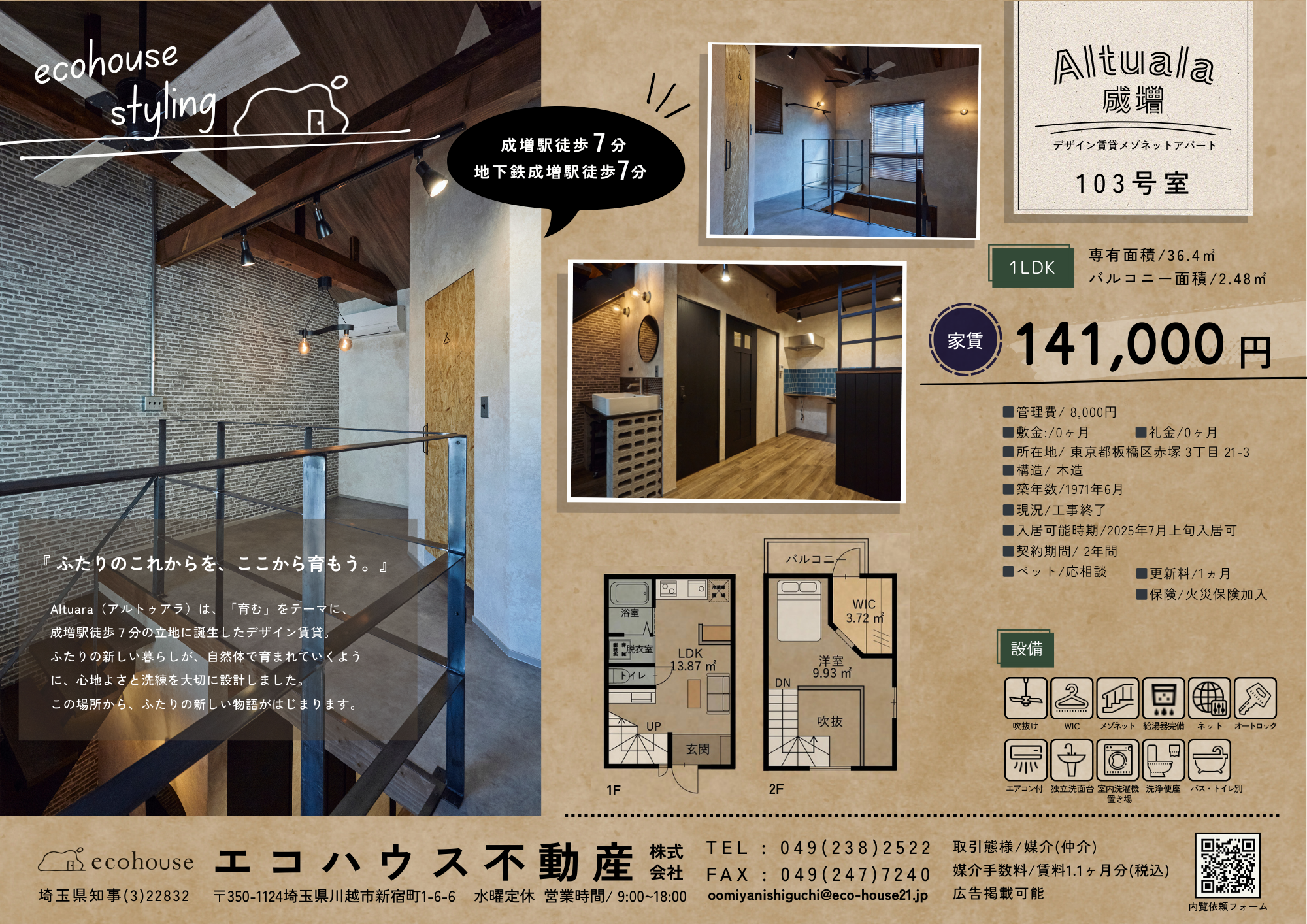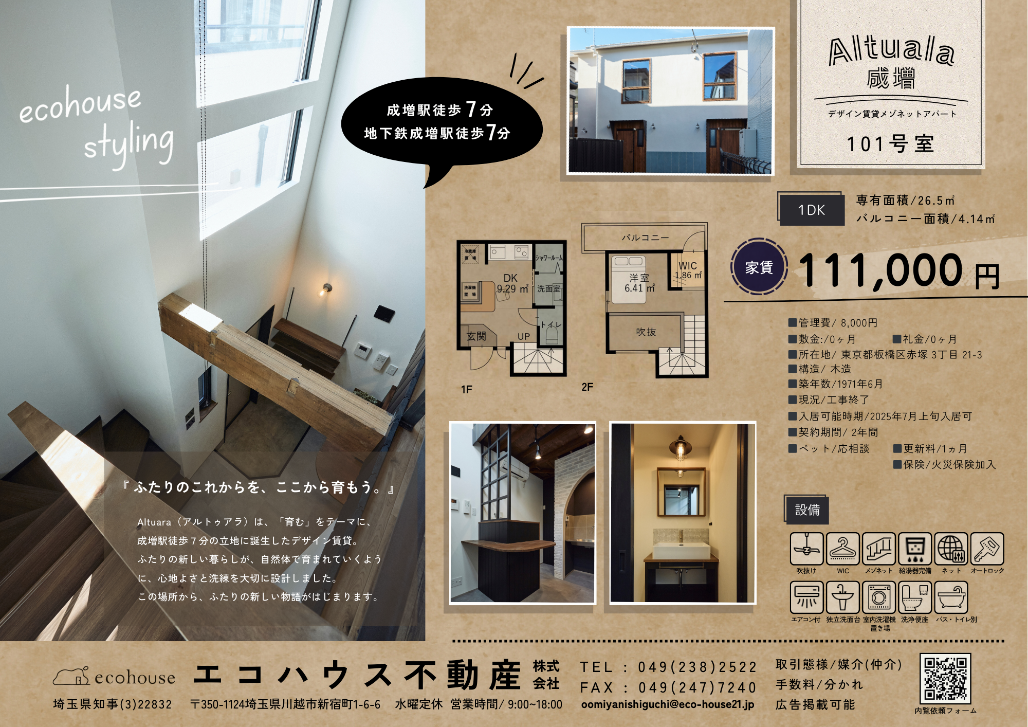 利便性と自然のバランスが取れたこのエリアは、ふたり暮らしはもちろん、ライフスタイルを大切にしたい方にぴったりの場所。Altualaの住まいは、そんな成増の魅力を存分に享受できるロケーションにあります。