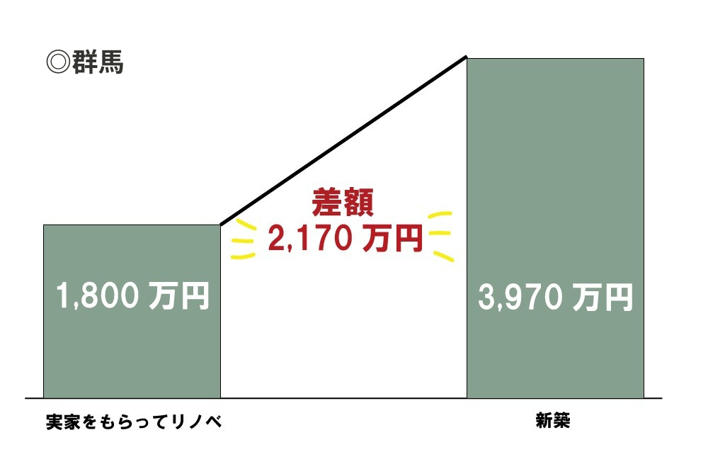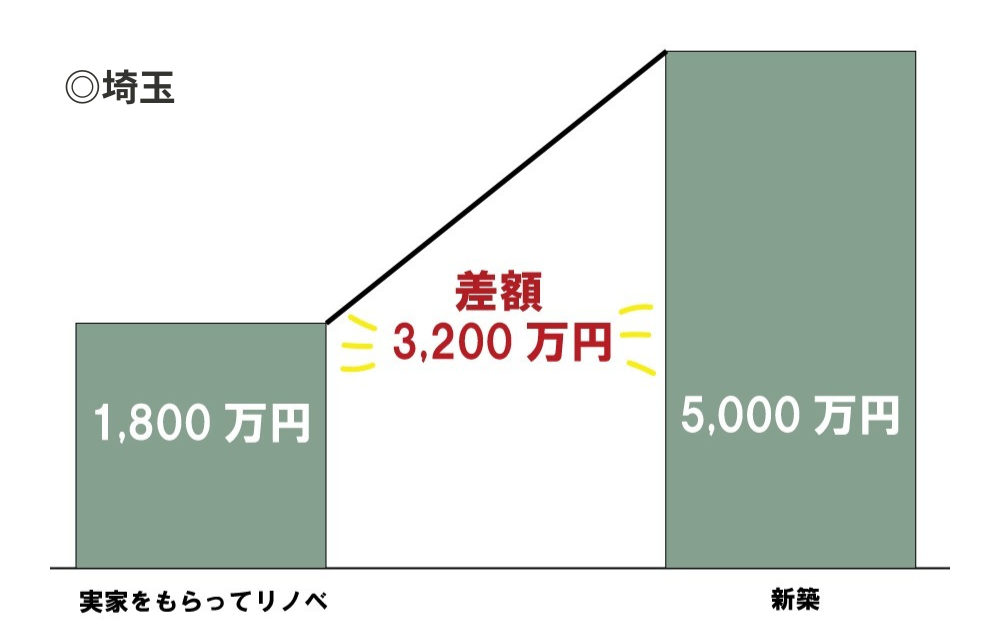 新築に比べ、実家リノベーションでは物件費がかからず、費用を抑えることができるのが最大のメリット!