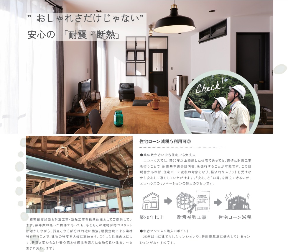 耐震・断熱もしっかり強化。築20年以上の住宅でも適切な補強で住宅ローン減税が利用可能。安心とお得を両立した住まいへ。